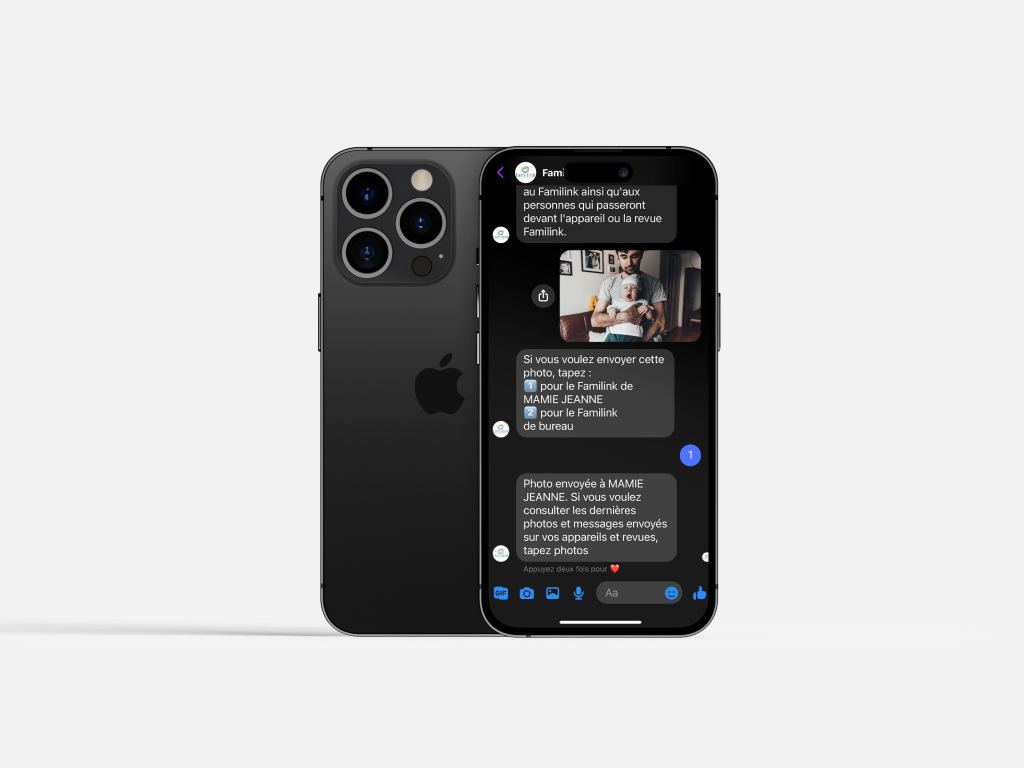 Díky této funkci můžete, pokud chcete, posílat své fotografie do rámečku Familink stejným způsobem, jako byste posílali obrázky přes Facebook Messenger. To je velmi praktické, pokud již používáte Messenger k posílání fotografií své rodině. Vaše babička tak nyní patří mezi vaše kontakty v Messengeru!
