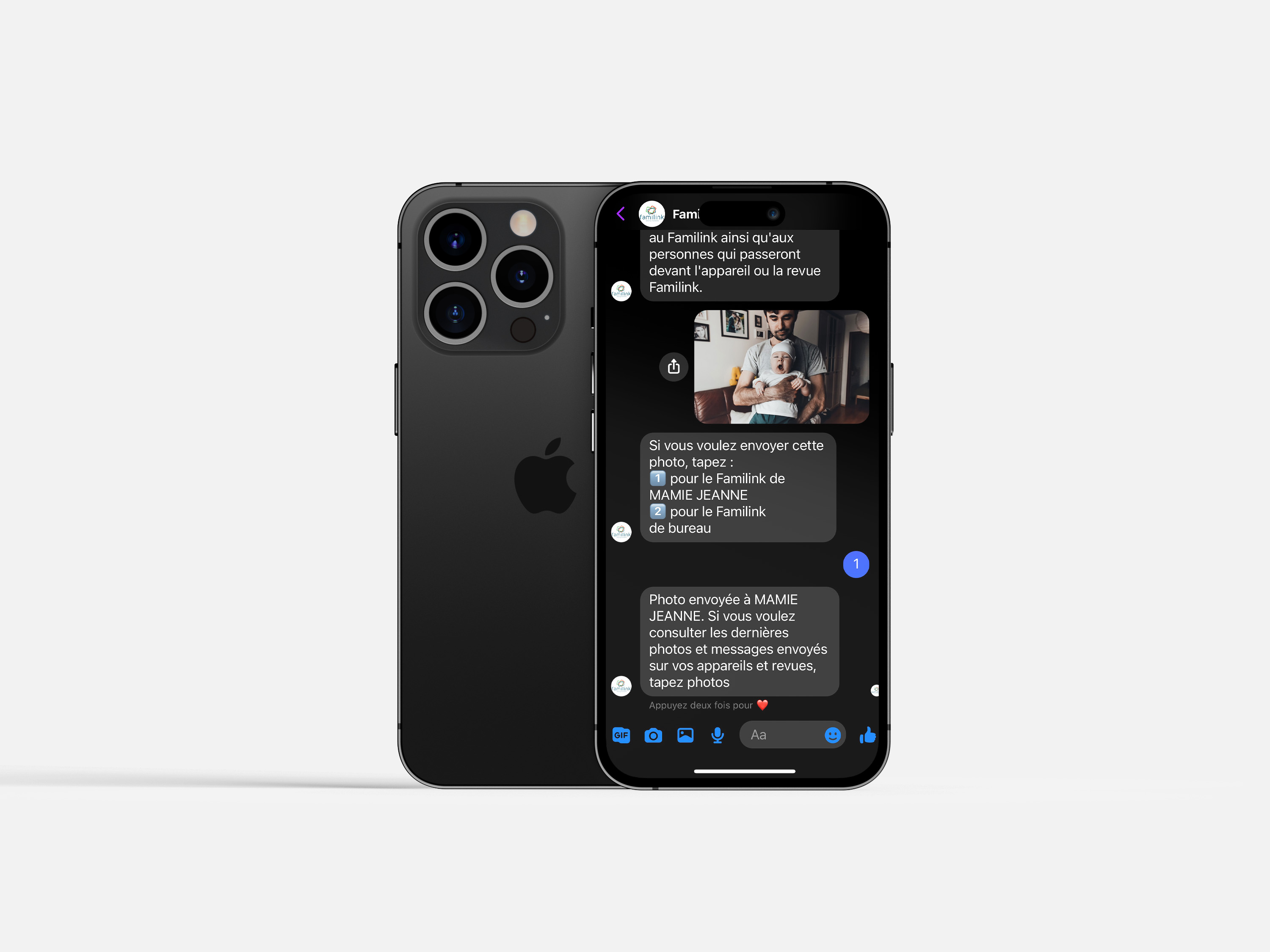 Thanks to this feature, you can send photos to your Familink frame in the same way as you would send an image via Facebook Messenger. It's really handy if you already use Messenger to send photos to your family. So your grandmother is now one of your Messenger contacts!